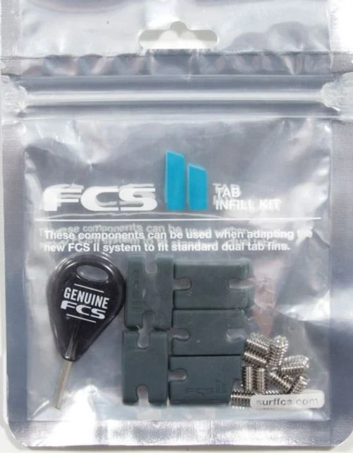 Contains 8 x FCS stainless Grub screws, FCS fin key and 5 rubber infill pieces